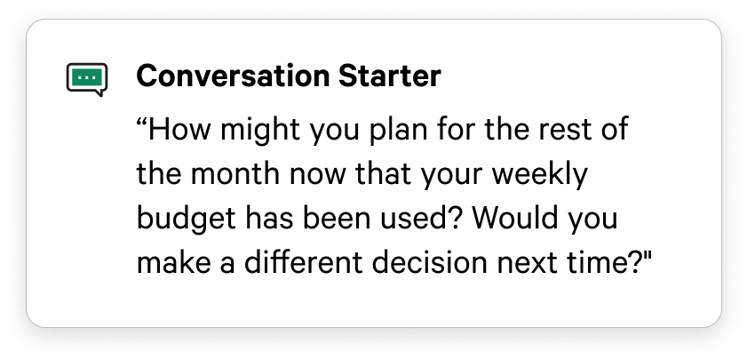 Visibility into transactions provides parents with information to have discussions with their teens about budgeting and spending choices.